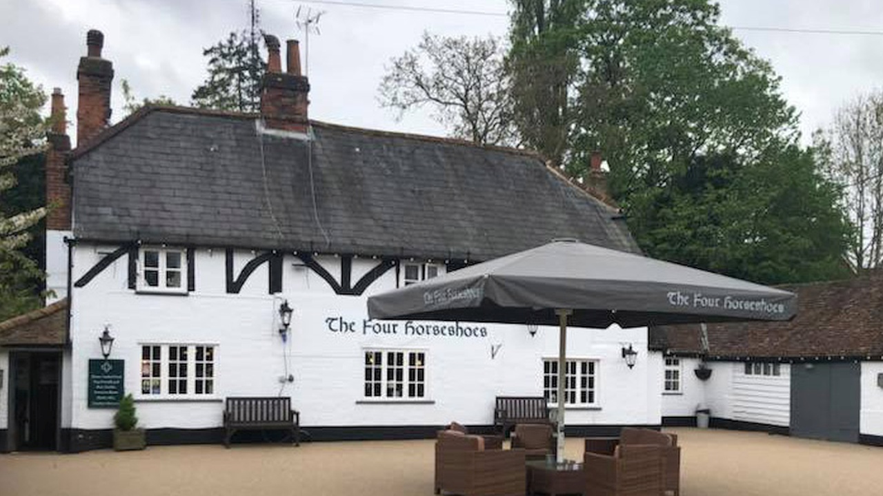 The Four Horseshoes is a lovely country pub situated in the popular village of Sherfield on Loddon in North Hampshire off the A33 between Basingstoke and Reading.